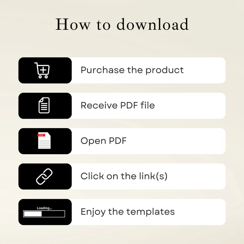 வெறுமனே வாங்கவும், PDF ஐப் பதிவிறக்கவும் மற்றும் Canva இணைப்பைப் பின்தொடரவும்.